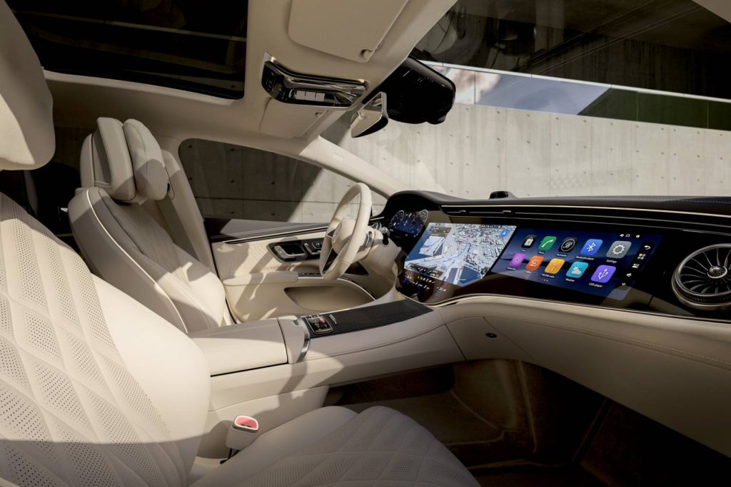 За забавата се грижи MBUX Hyperscreen, составен од три екрани под едно стакло – дисплеј за возачот (12.3 инчи), централен дисплеј (17.7 инчи) и дисплеј за совозачот (12.3 инчи).