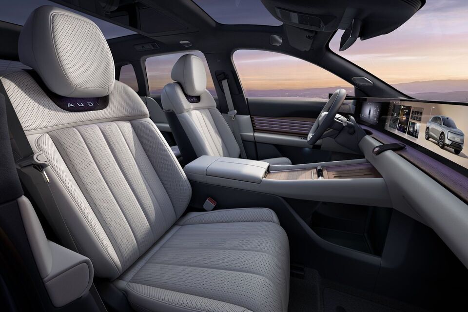 Во ентериерот доминира панорамскиот дизплеј со големина од 59 инчи и воланот кој е сплескан на долниот дел.